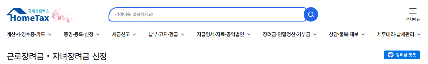 - 로그인 후 [근로장려금 신청] → 자동 안내 따라 신청
